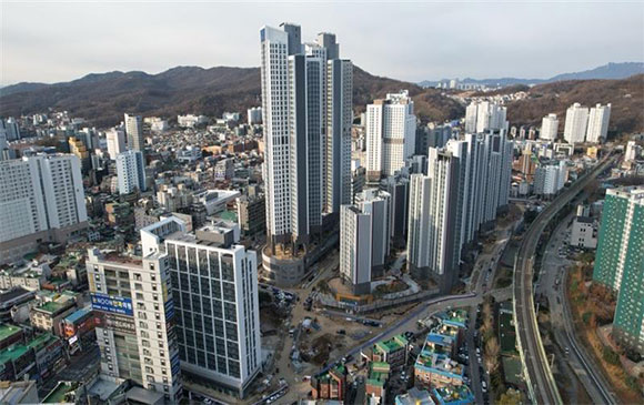 - 주상복합 골조 완료/ 외벽 면처리 작업