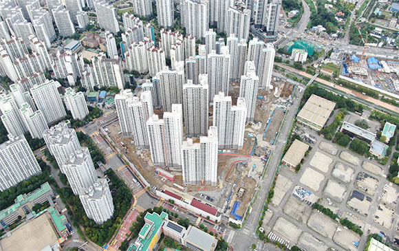 -. 철근콘크리트공사 : APT 및 주변 지하주차장 지붕층 ~ 3F 바닥 콘크리트 타설,