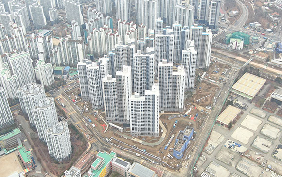 - 부대토목공사 : 동 주변 지상층 맨홀 설치 및 관부설, 골재 포설, 경계석 설치