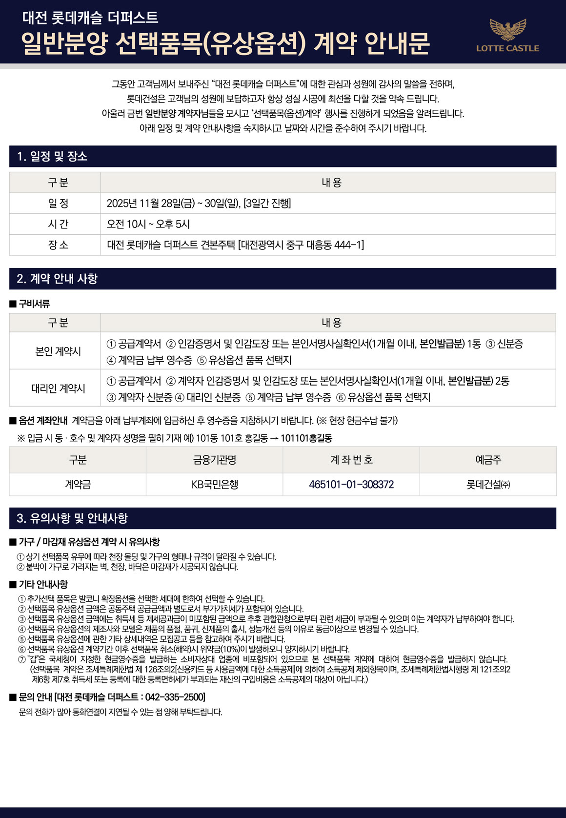 HOME 분양정보 선택품목계약안내문