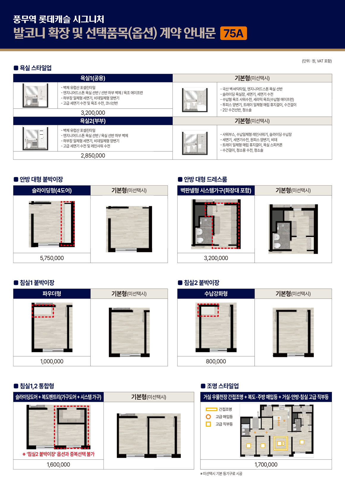 HOME 발코니옵션중도금 타입별 발코니/옵션